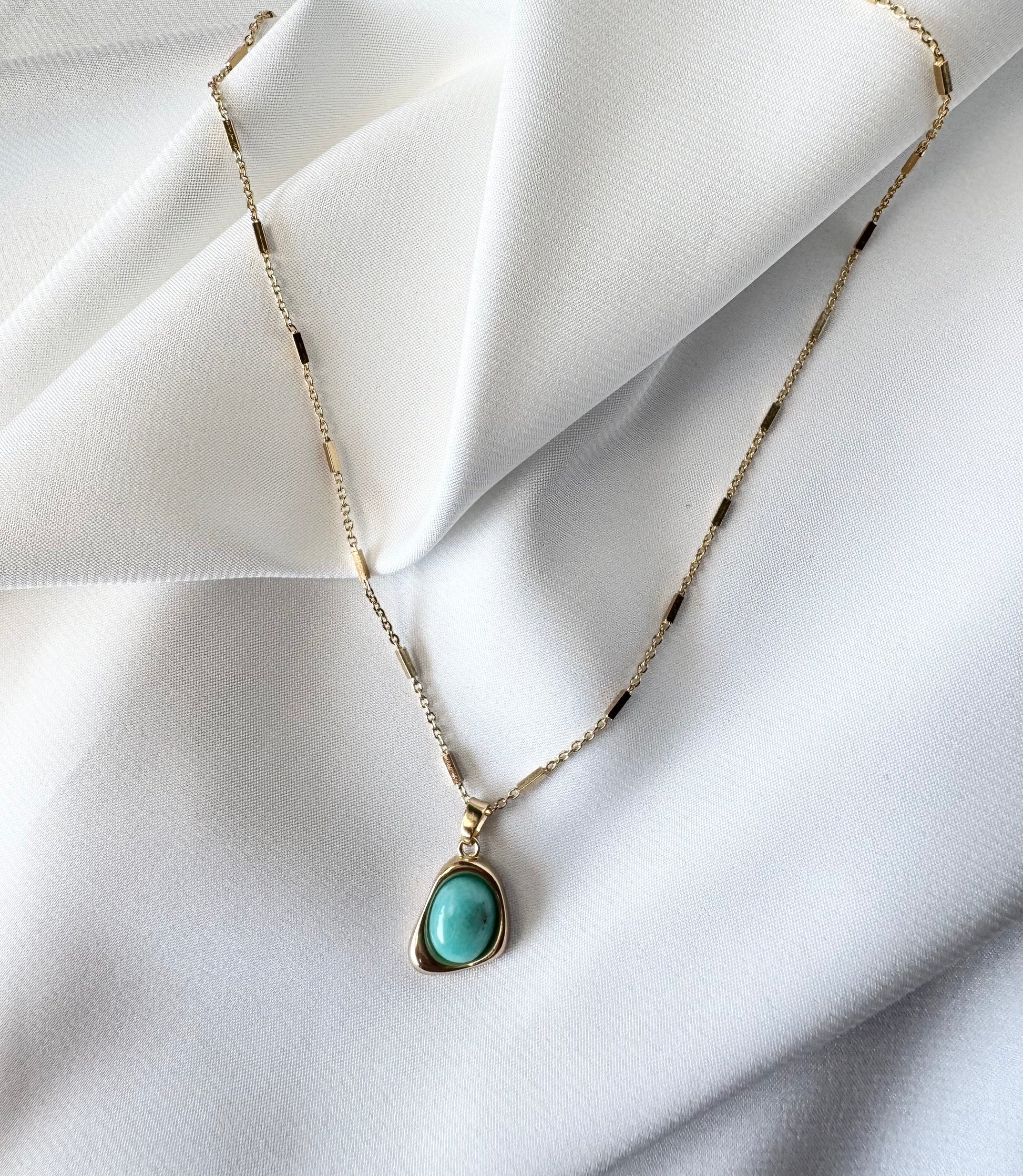 שרשרת קרואו- שרשרת עם תליון בשיבוץ אבן אמזוניט פרואני בציפוי 2 מיקרון בצבע זהב