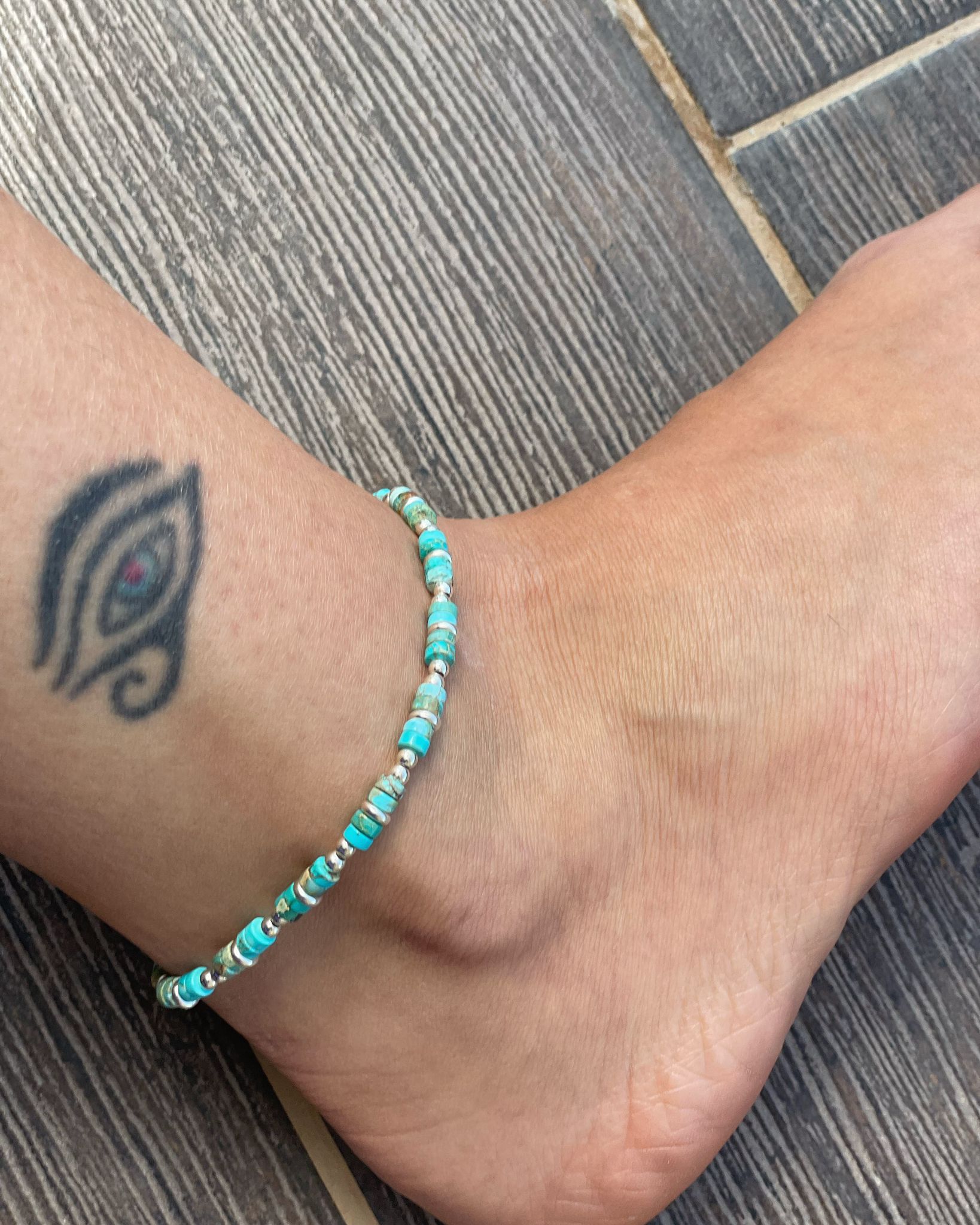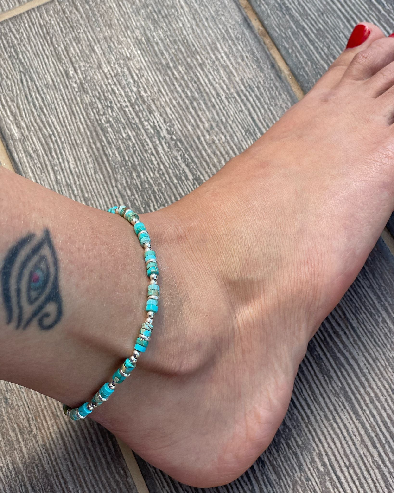 צמיד לרגל גאיה טורקיז- צמיד לרגל מכסף 925 בשילוב חרוזי היולט בצבע טורקיז