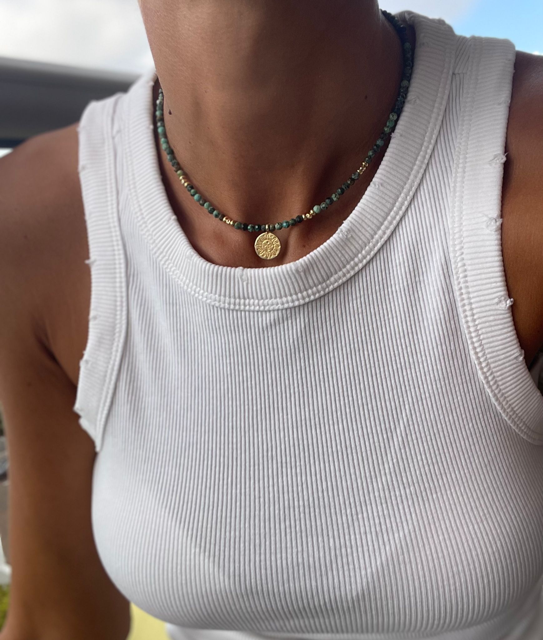 שרשרת סאן- שרשרת משולבות בציפוי מיקרוני בצבע זהב ואבני רודנייט .