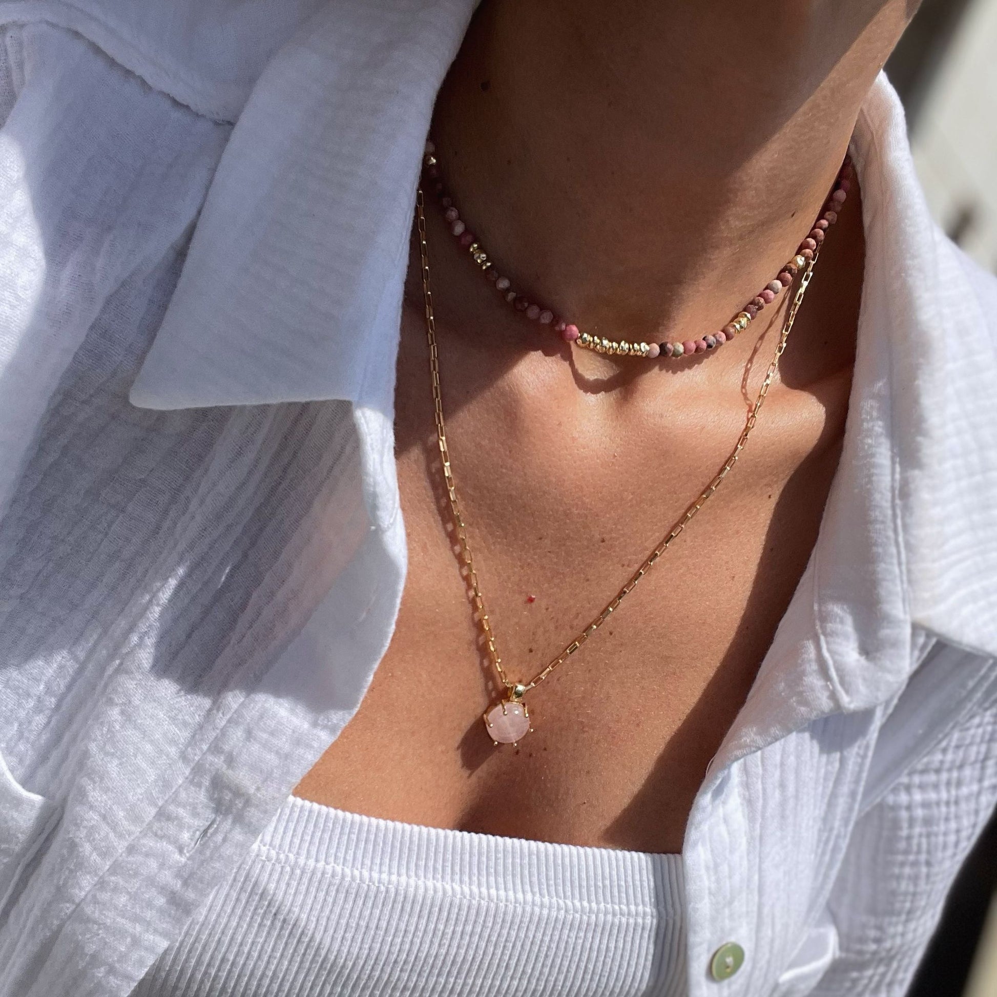 שרשרת פינק- שרשרת בציפוי 2 מיקרון בשילוב אבן רוז