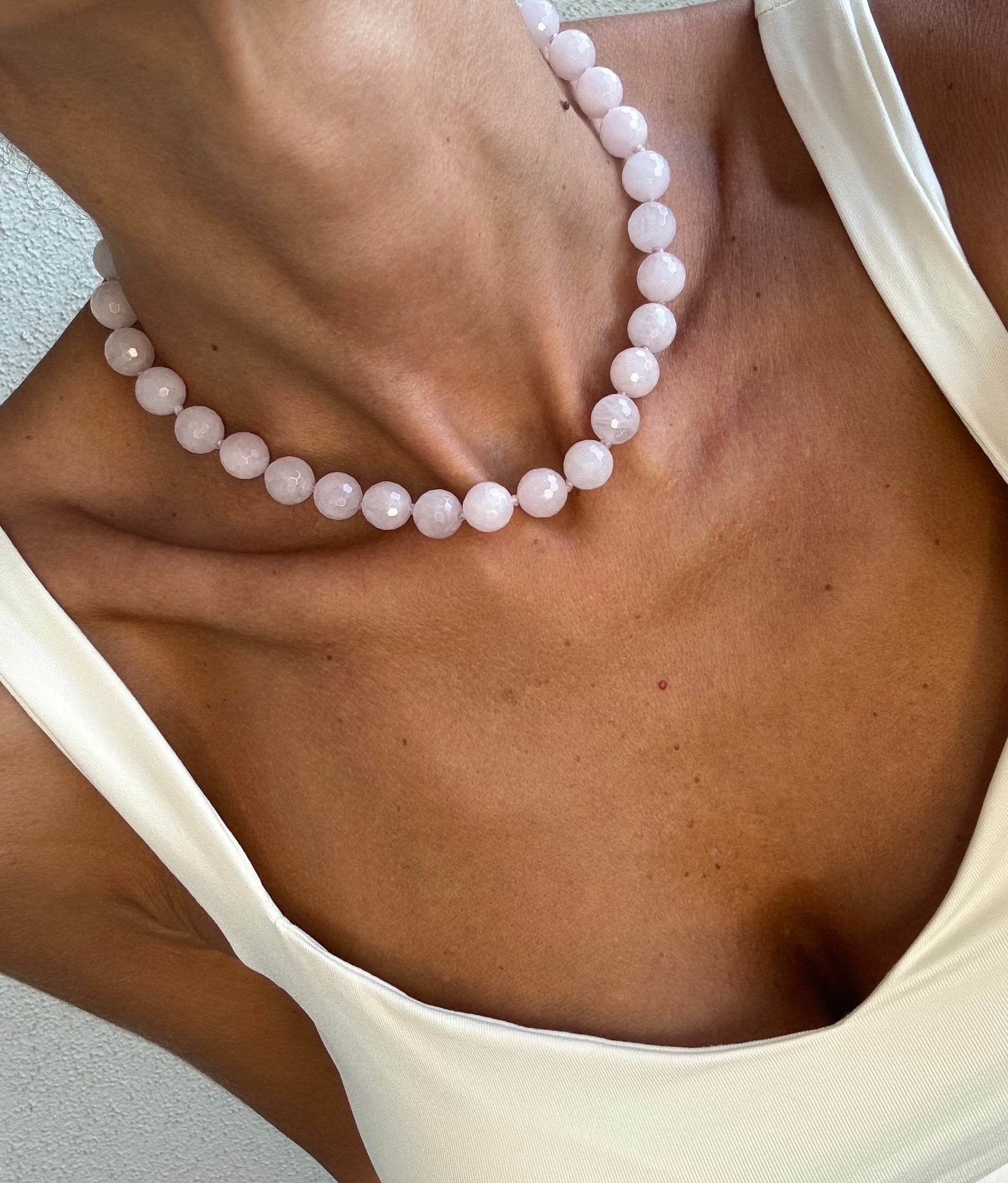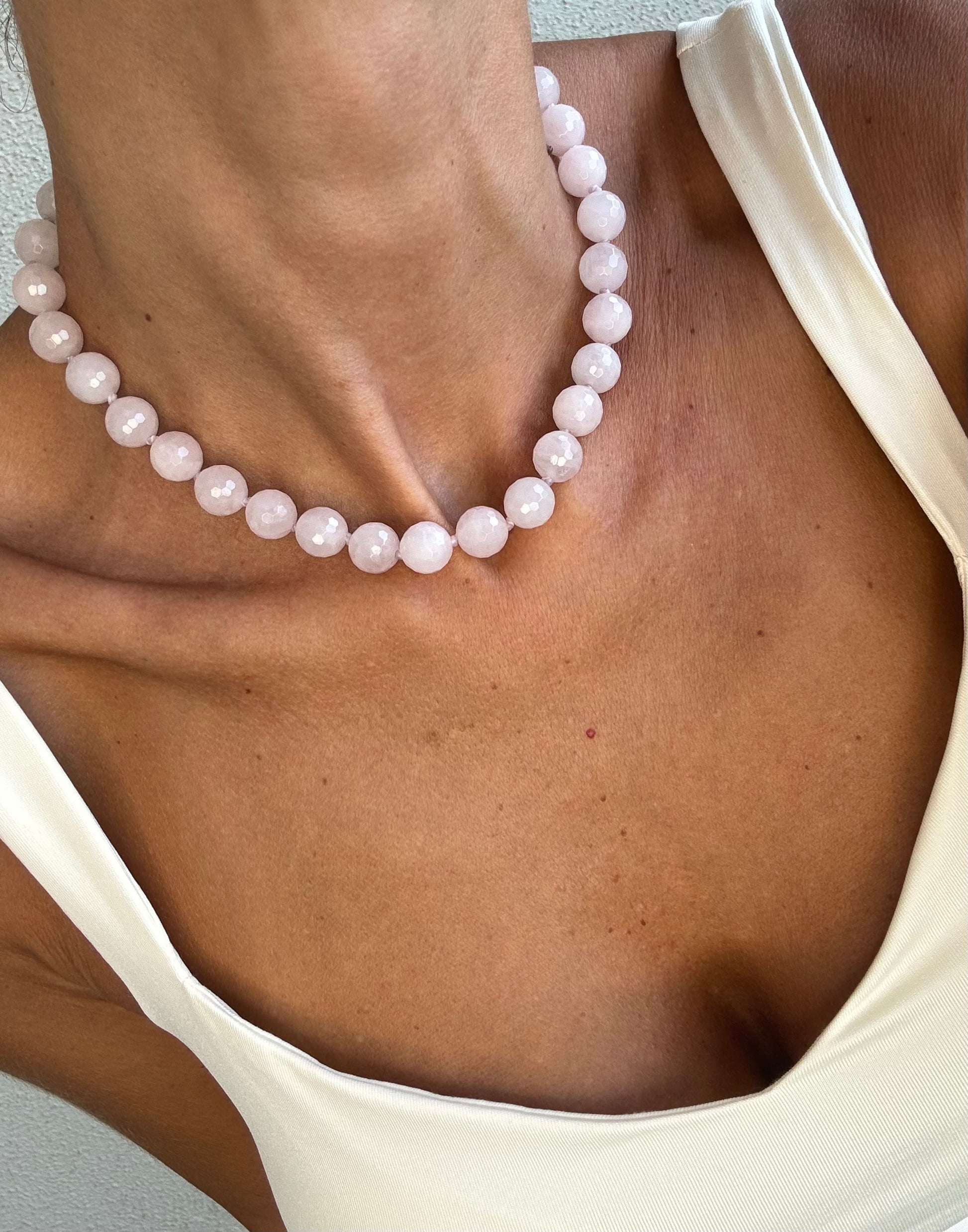 שרשרת רוז קוורץ פסט שרשרת מאבני חן רוז קוורץ פסט בגודל 10 מ״מ